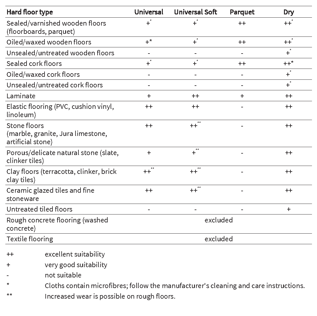 For open-pored as well as very smooth, difficult to clean or dark floors. Special super microfiber made of polyester and polyamide.